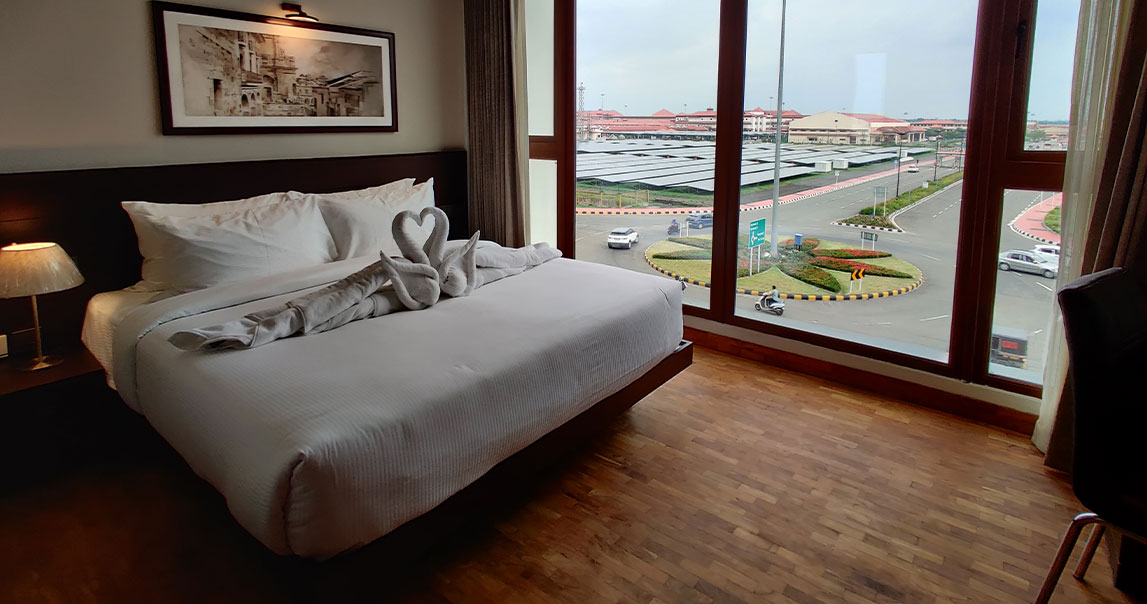 Panorama Meeting Room – Its located in the Roof Top and have a capacity of 8-10 people, with a Panoramic view of Cochin International Airport, provides High Speed Internet , 55’’ HD TV to allow presentations, demonstrations or training purposes. Also it’s an ideal place for business meetings.